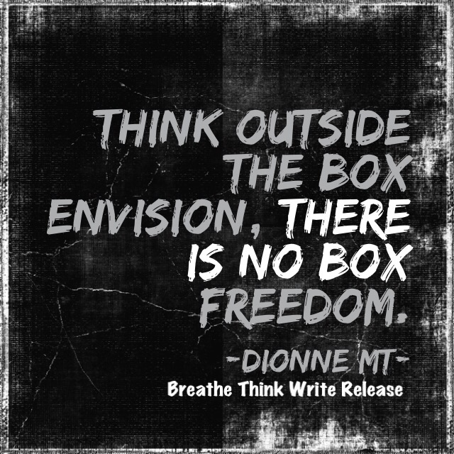 Mindset. March 23, 2016March 23, 2016 ~ Breathe Think Write Release Think about it.. who created this box? The idea in itself is what traps you. There is no box. Breathe Think Write Release Spread The Love Click to share on WhatsApp (Opens in new window) WhatsApp Tweet Click to email a link to a friend (Opens in new window) Email Share on Tumblr Click to share on Reddit (Opens in new window) Reddit More Click to print (Opens in new window) Print PocketLike Loading... Related